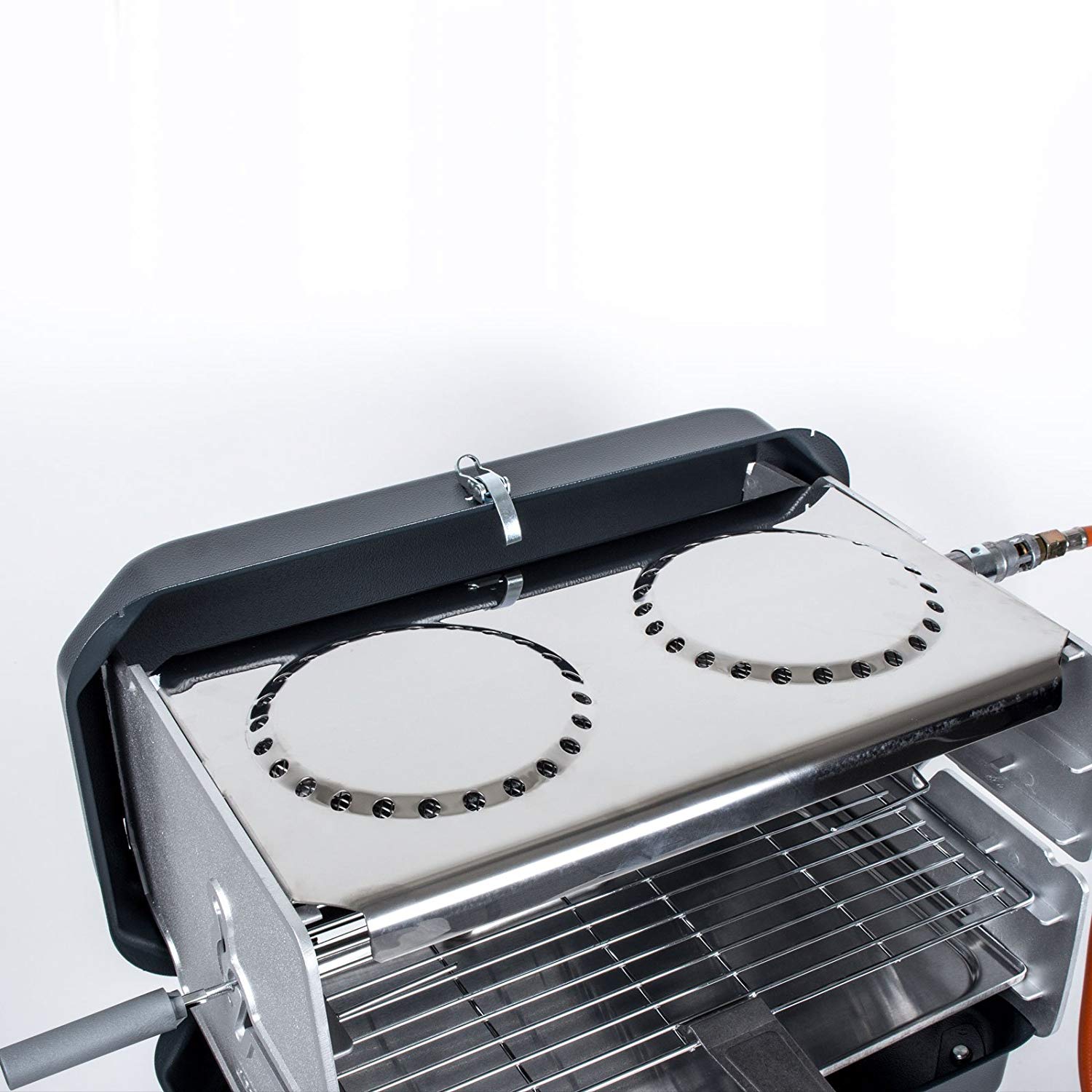 Mit den Cramer Dometic Gasgrillgeräten grillen wir mit Oberhitze und ohne Rauch und Qualm. Zudem ermöglichen uns die zwei bis drei Edelstahlbrenner (Modell abhängig), das Zubereiten von Suppen, Beilagen oder leckeren Desserts auf den Kochfeldern mit den Edelstahlabdeckungen. Der im Lieferumfang enthaltene Grillspieß mit Fleischalter, muss mit der Hand bedient werden. Von Dometic gibt es als Zubehör netz- oder batteriebetriebene Grillspießmotoren separat zu erwerben. Der Schlauch sowie der Druckminderer müssen extra gekauft werden.
