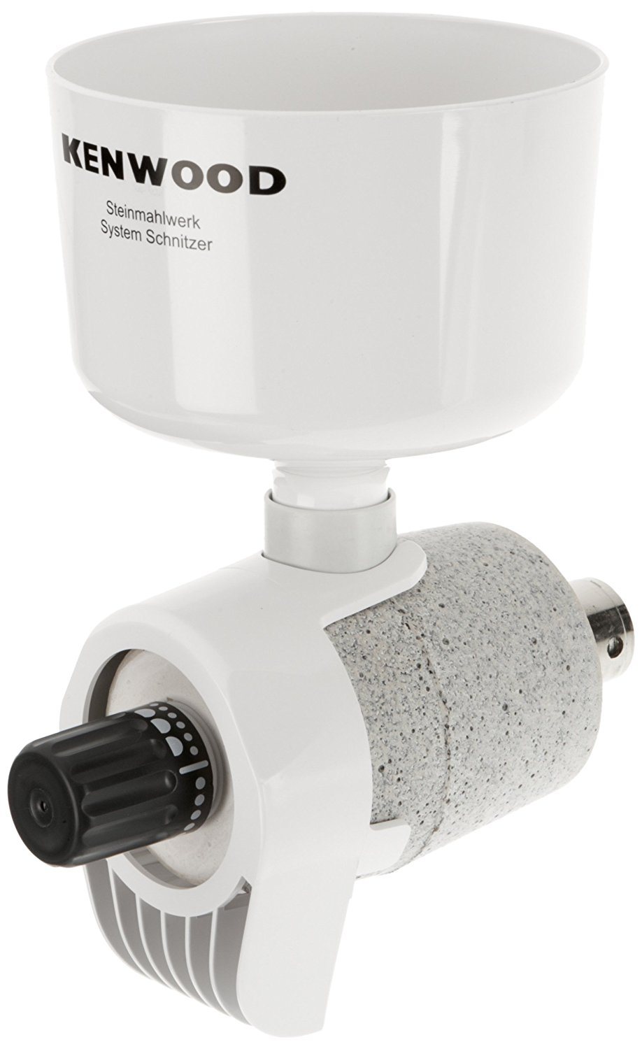 Kenwood ist ein Hersteller von Küchengeräten. Er führt zwei Kenwood Getreidemühlen, die KAX941 Pl und die AT941 A als Zubehör für die Kenwood Küchenmaschinen Chef und Major im Sortiment. Als Getreidemühlen für die Küchenmaschine sind die Mühlen aus Kunststoff. Deshalb sind sie günstiger in der Anschaffung als eine Getreidemühle aus massivem Holz.