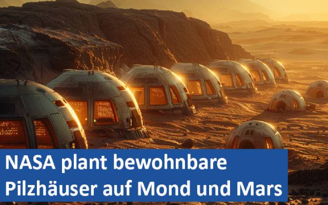 Die NASA erforscht derzeit, wie Pilze zum Bau von Wohnstrukturen auf anderen Planeten genutzt werden können. In Zusammenarbeit mit dem Architekten Chris Maurer von Redhouse Architecture wird daran gearbeitet, Pilzsporen und Algen auf die Oberflächen des Mondes oder Mars zu bringen. Mit der Zugabe von Wasser und einigen Nährstoffen könnte der Pilz in einer aufblasbaren Form wachsen und ein Habitat bilden. Dieses innovative Konzept soll nicht nur das Bauen im All erleichtern, sondern auch Ressourcen vor Ort nutzen.