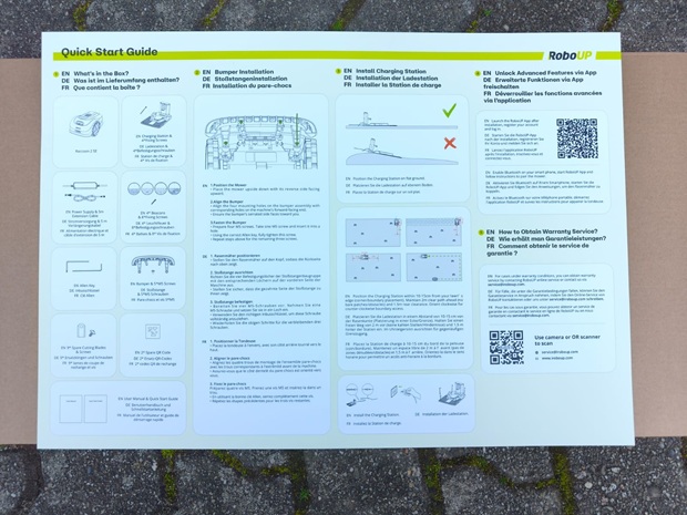 Zu Beginn zählt vor allem die Frage, wie schnell der Weg vom Auspacken zum ersten Mähdurchgang ist. Der RoboUP startet ohne den typischen Installationsaufwand rund um Drahtverlegung, was im Alltag spürbar entlastet. In meiner Umgebung wirkt der Betrieb angenehm zurückhaltend und passt gut zur Angabe von ≤56 dB(A). Wenn ihr besonders geräuschempfindlich seid, hängt die Wahrnehmung dennoch davon ab, wie nah Terrasse, Fenster oder Nachbars Garten am Rasen liegen.