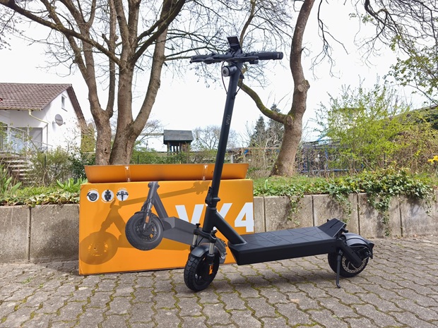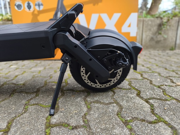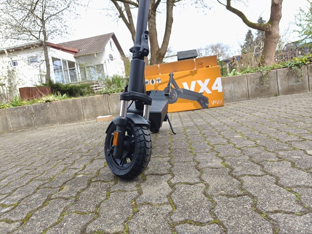 Mit einer Trommelbremse vorne, der Kombination aus Rekuperation und Scheibenbremse hinten sowie zwei klar getrennten Bremshebeln verfügt der VX4 über ein vielseitig dosierbares Bremssystem. Der Hersteller hebt zusätzlich die verstärkte hintere Scheibenbremse und die um zwei Millimeter dickere Bremsscheibe hervor, was das System auf hohe Lasten vorbereitet. Gerade für schwerere Fahrer:innen bleibt eine regelmäßige Wartung allerdings besonders wichtig, um die Bremsleistung dauerhaft hoch zu halten. Wie sicher es sich bergab anfühlt, hängt zudem stark von Streckenprofil, Witterung und persönlicher Erfahrung ab.
