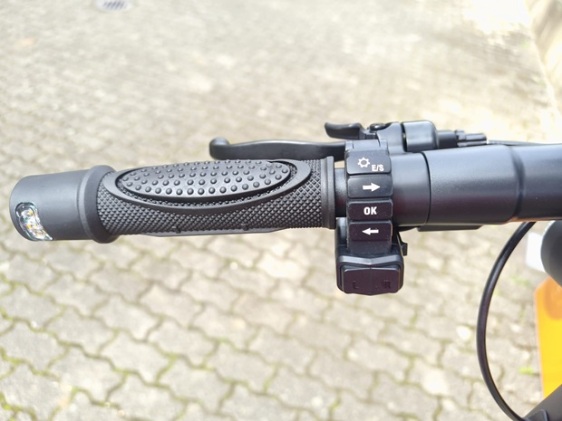 - Bremsverhalten und Kontrolle: Wirkung der vorderen Trommelbremse und der hinteren Kombination aus Rekuperation und Scheibenbremse, Dosierbarkeit über die zwei separaten Bremshebel