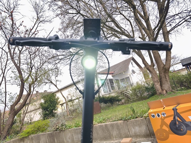 Tag sechs nutzt die Dämmerung, um das Lichtkonzept besser beurteilen zu können. Das Frontlicht mit 60 LUX und Doppelkegel-Charakteristik wirkt nicht nur als „Gesehen-werden-Licht“, sondern unterstützt real das Sehen auf dunkleren Strecken. Ergänzt wird das Ganze durch ein Rücklicht mit Bremslichtfunktion, das nachfolgendem Verkehr deutlicher signalisiert, wann ihr verlangsamt. Die verbauten Blinker vorne und hinten machen Richtungswechsel nachvollziehbarer, was vor allem in unübersichtlichen Situationen hilfreich sein kann.