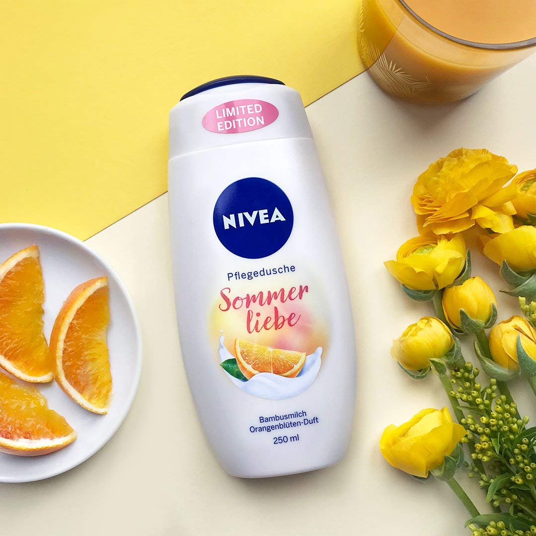 Die Nivea Pflegedusche Sommerliebe Sommerliebe mit Bambusmilch gibt es als exklusive limitierte Sommeredition. Ein atemberaubendes Duscherlebnis wird durch den samtig-weichen Duft nach Orangenblüten gebildet. Nach dem Duschen bleibt ein geschmeidiges und gepflegtes Hautfeeling.