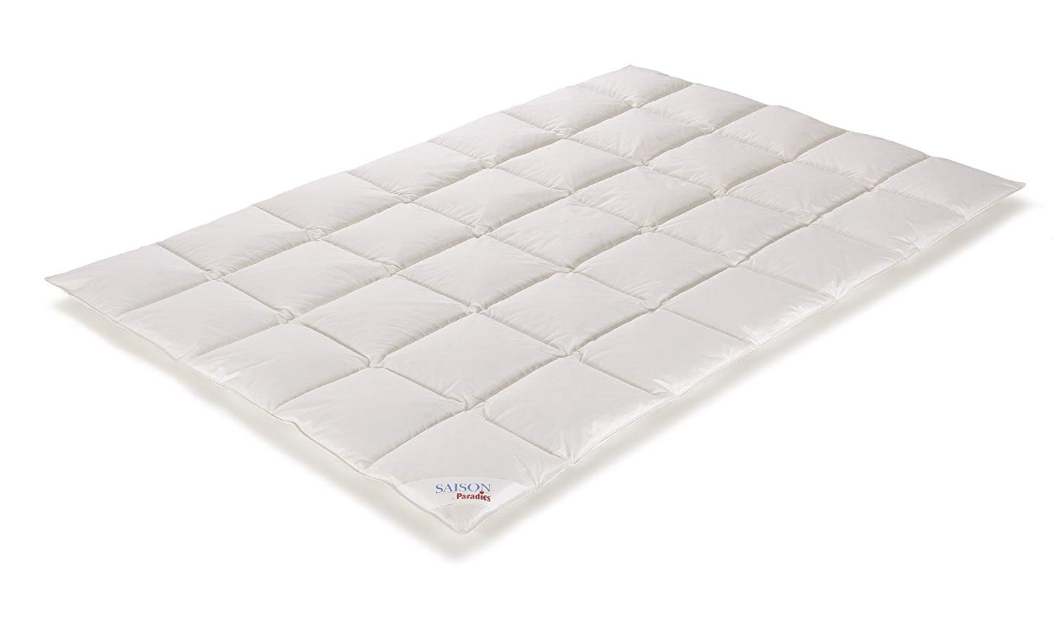 Der Bezug besteht aus einem Baumwoll-Satin, der mit einer silberblauen Flechtbiese und dem gestickten Paradies-Label gekennzeichnet ist. Diese Daunendecken sind in Füllgewichten zwischen 455 und 595 g erhältlich. Natürlich darf auch hier eine Karosteppung nicht fehlen. Darüber hinaus bieten diese Daunendecken eine 1,5 cm Steghöhe. Beachten Sie bitte, dass diese Decken lediglich bis 40 Grad Celsius in der Waschmaschine gewaschen werden dürfen.