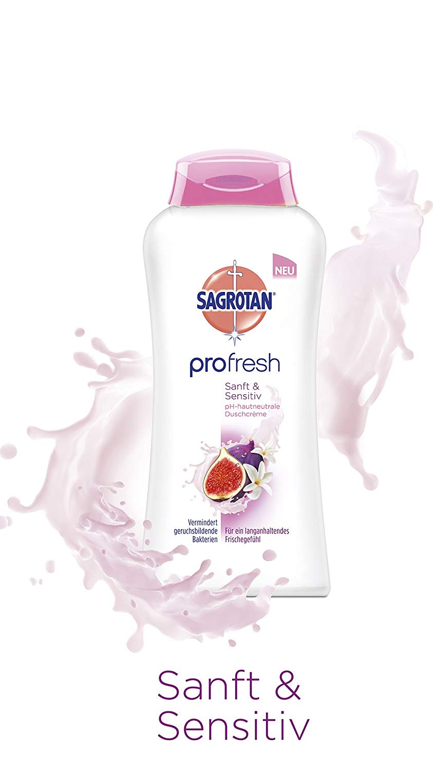 Sagrotan profresh werden vom Unternehmen als tatsächliche Dusch-Innovation benannt, denn sie minimieren auf sanfte Weise geruchsbildende Bakterien. Zudem sind diese Produkte pH-hautneutral und besitzen eine feuchtigkeitsspendende Pflegeformel. Dadurch erhält die Haut zum gleichen Zeitpunkt additional eine Pflege. Diese Sagrotan Duschgels sind frei von Silikonen, Parabenen und Mineralölen.