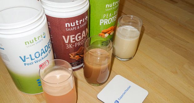 POST WORKOUT Shake V LOADER, PROTEIN PULVER Erbse-Reis – Mandel und PROTEINPULVER VEGAN Schokolade von Nutri-Plus im Test – in Deutschland hergestellt