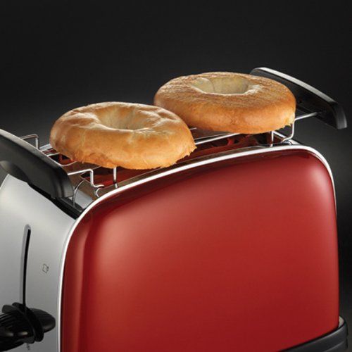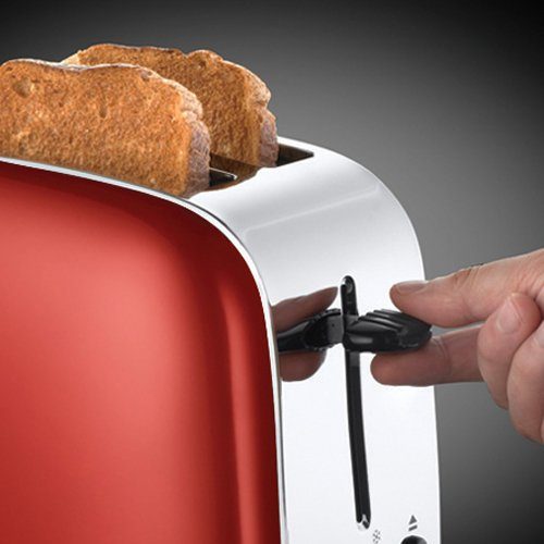 Der 1.420 Watt starke Toaster hat natürlich auch seinen Preis, weshalb aus Gründen des besseren Preis-Leistungs-Verhältnisses häufig der Toaster RUSSELL HOBBS 18951-56 die Nase vorn hat. Ein weiteres besonderes Modell wäre der Retro Ribbon 4-Schlitz Toaster, der gleich vier Toastscheiben auf einmal bewältigen kann und außerdem ein originelles rotes Retro-Design besitzt. Optisch bietet RUSSEL HOBBS eine ordentliche Vielfalt: blau, rot, schwarz und cremefarben.